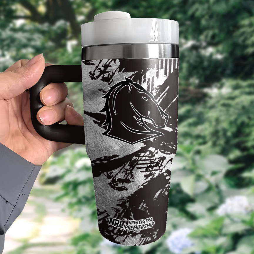Auspiritmerch Brisbane Broncos Custom Stanley Quencher 14oz Stainless Steel Tumbler With Handle