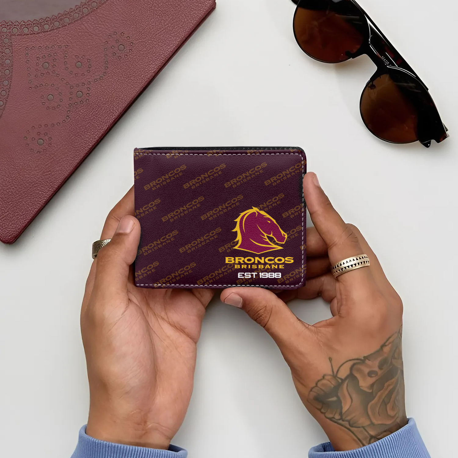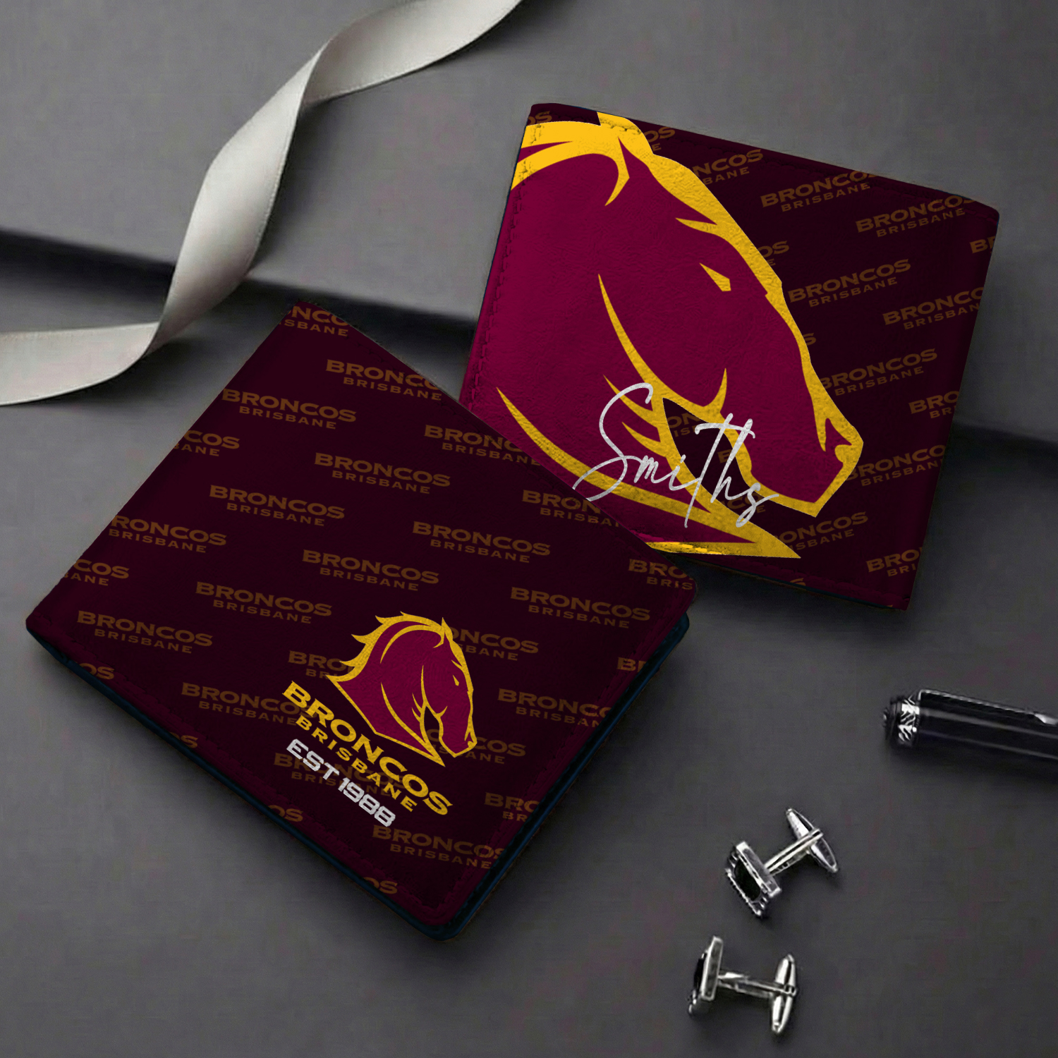 Auspiritmerch Brisbane Broncos Personalized Leather Wallet Gift For Fans