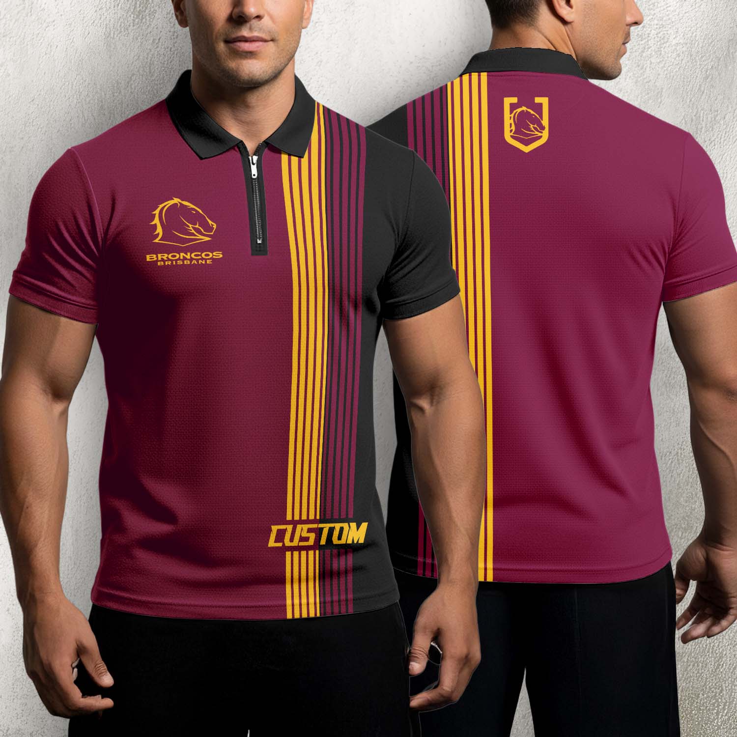 Auspiritmerch Brisbane Broncos Personalized Zip Polo Shirt Gift For Fans $39.95