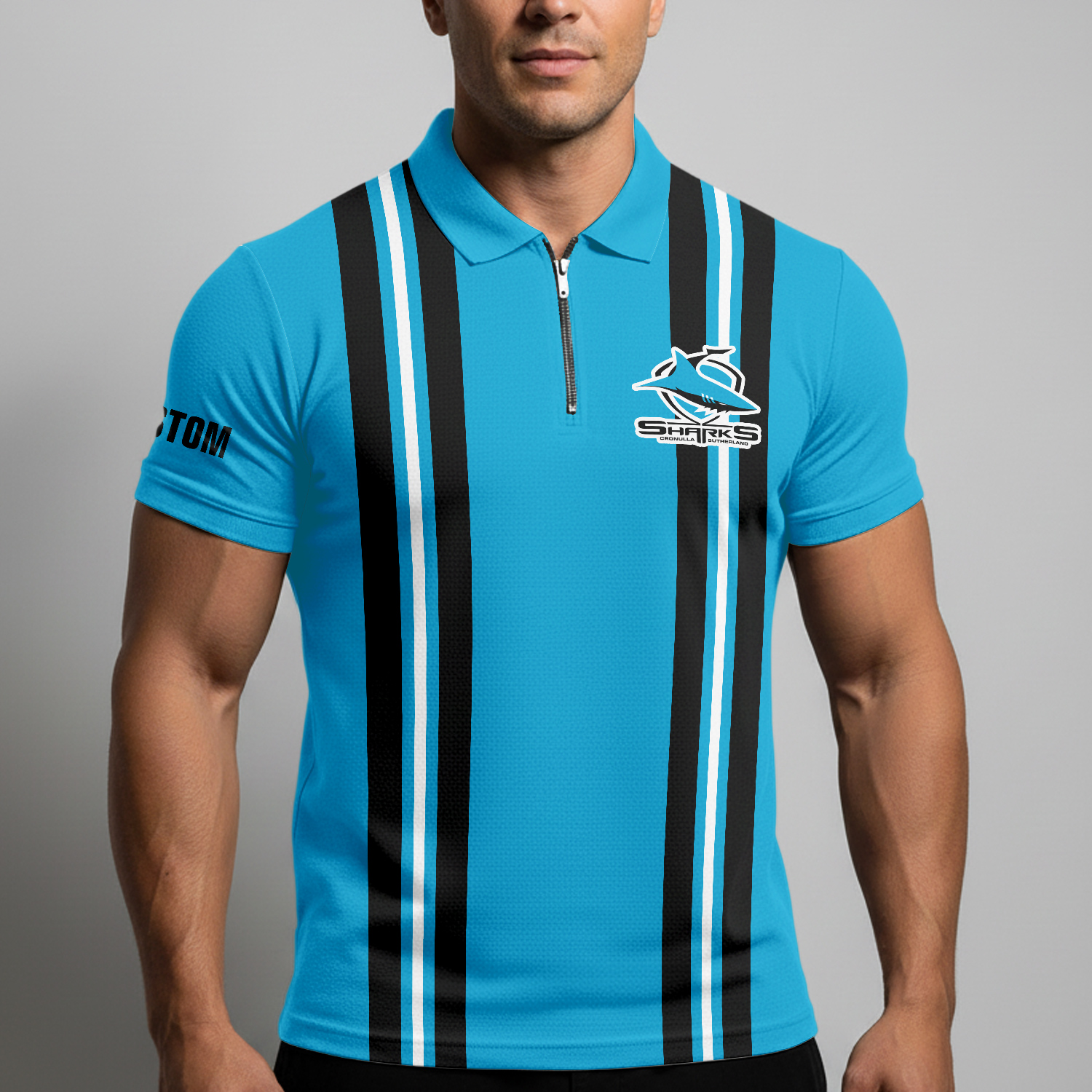 Auspiritmerch Cronulla-Sutherland Sharks Personalized Zip Polo Shirt Gift For Fans