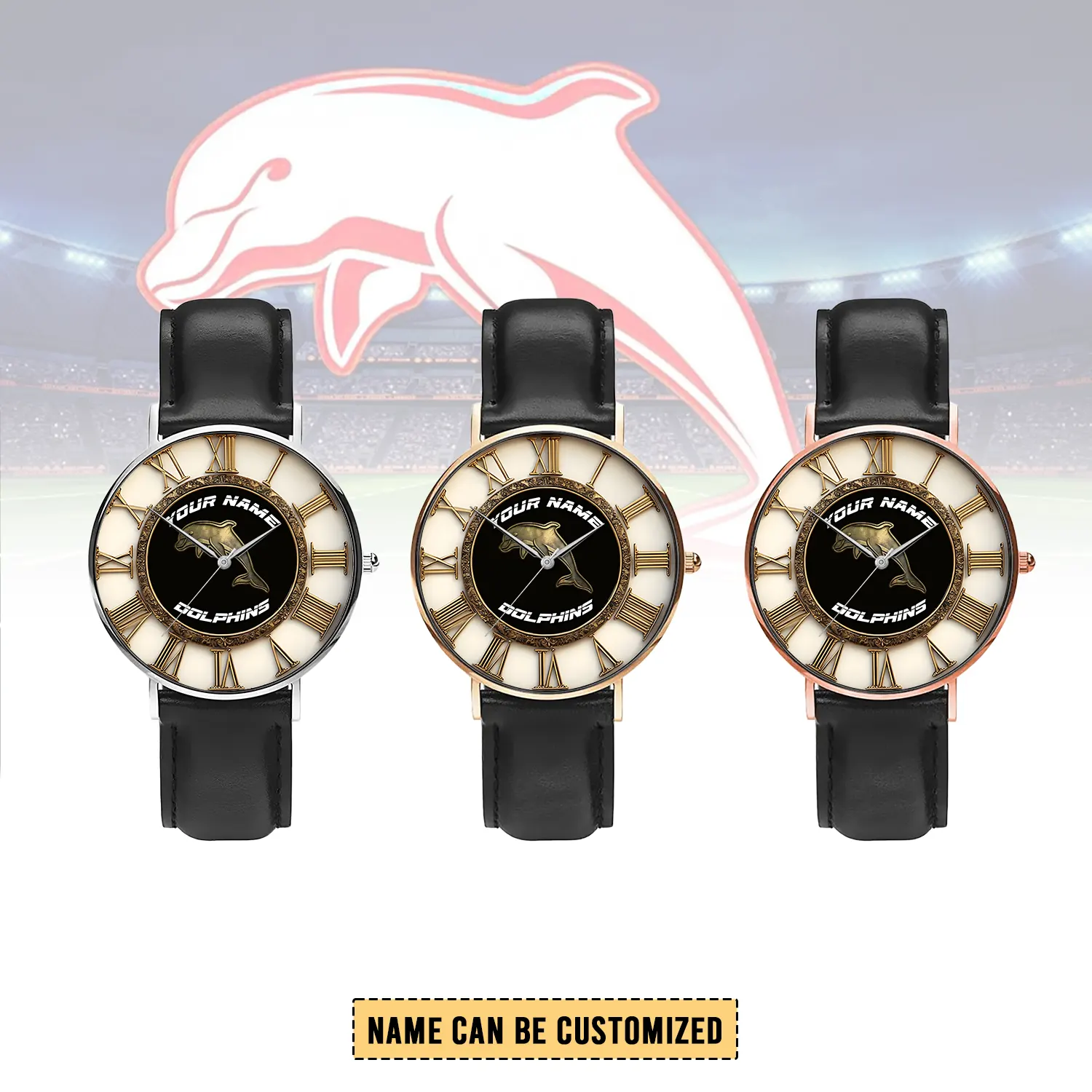Auspiritmerch Dolphins Personalized Stitched Leather Watch Gift For Fans