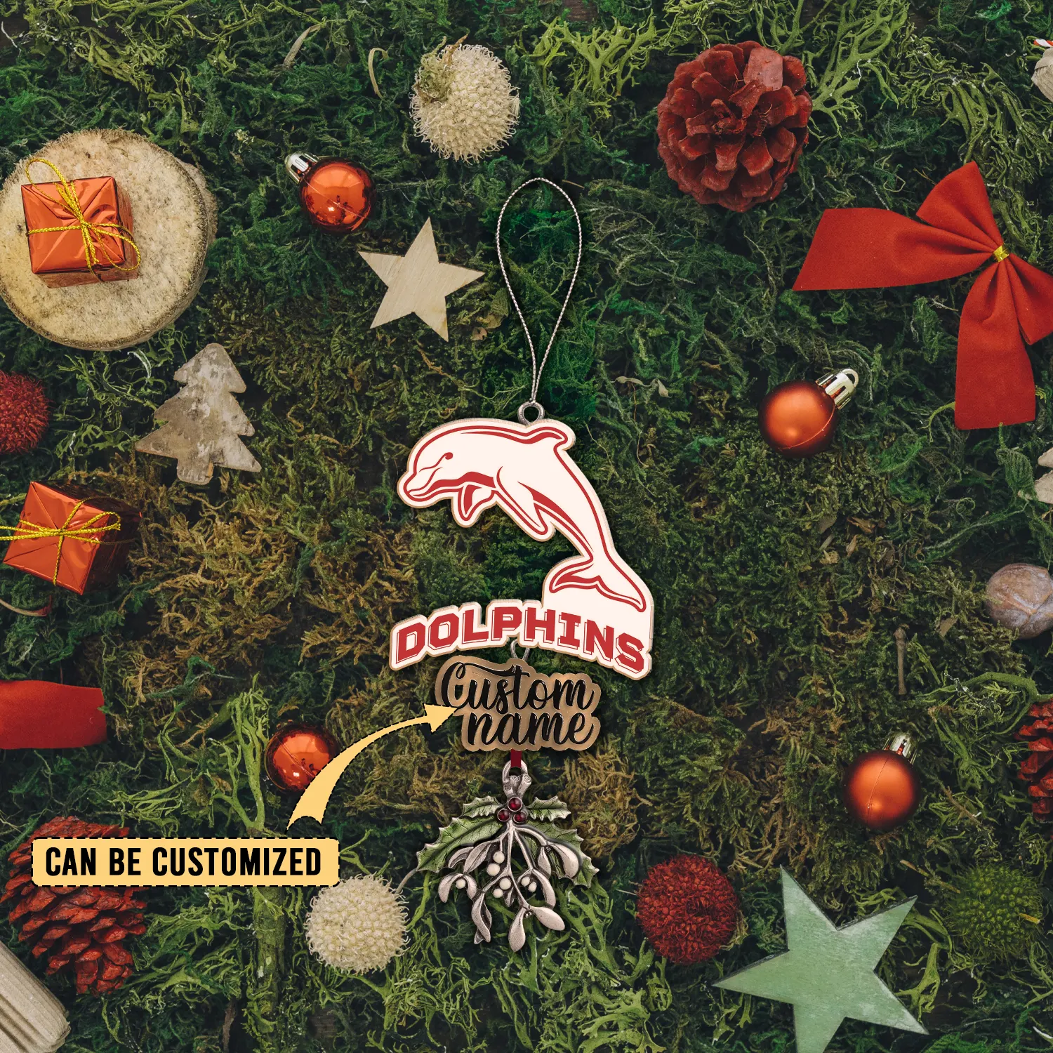 Auspiritmerch Dolphins x Christmas Personalized Acrylic Ornament Gift For Fans