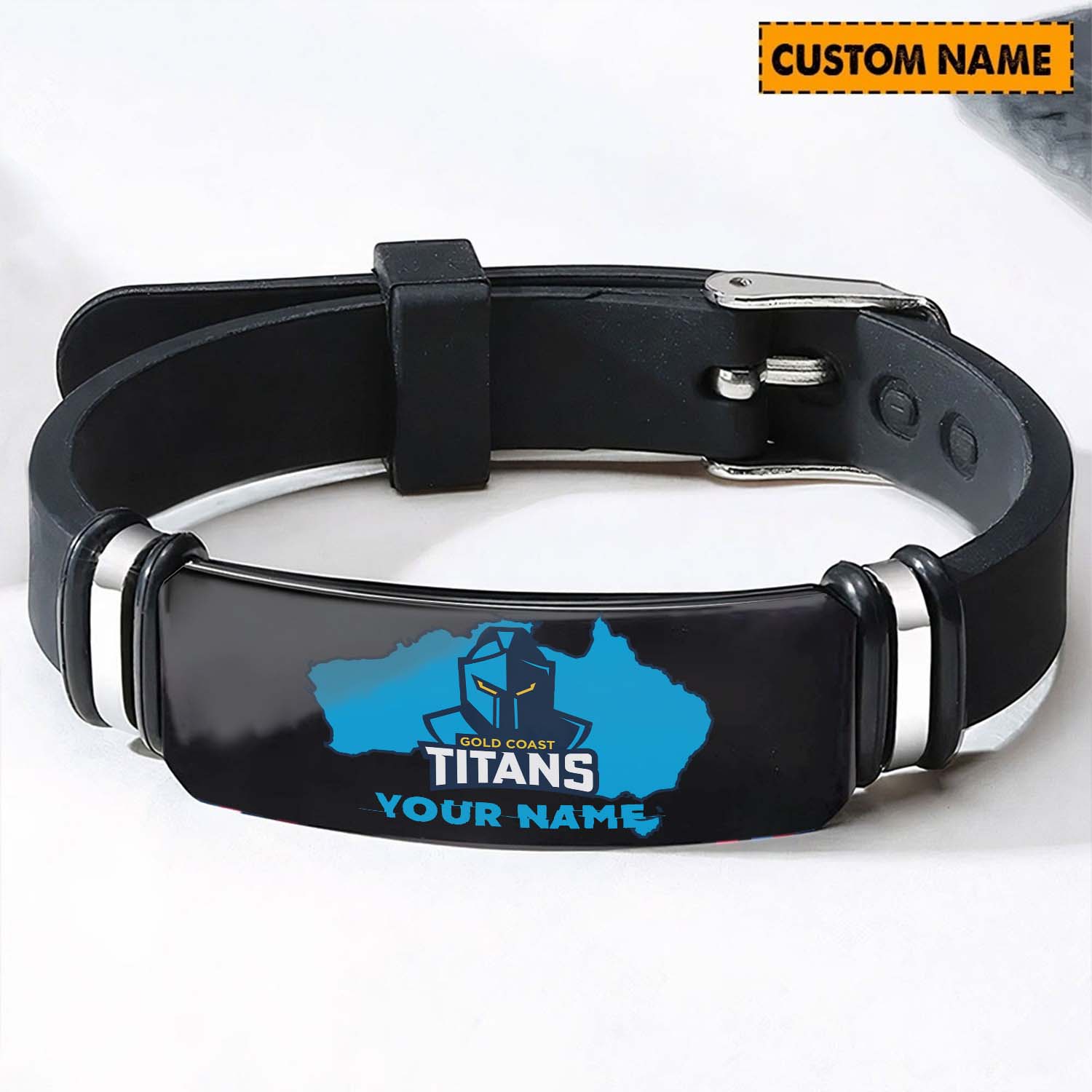 Auspiritmerch Gold Coast Titans Personalized Steel Silicone Bracelet Gift For Fans