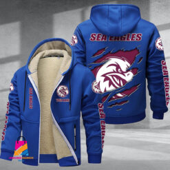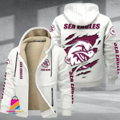 Auspiritmerch Manly Warringah Sea Eagles Personalized Hooded Fleece Thermal Cotton Jacket Gift For Fans $80.99