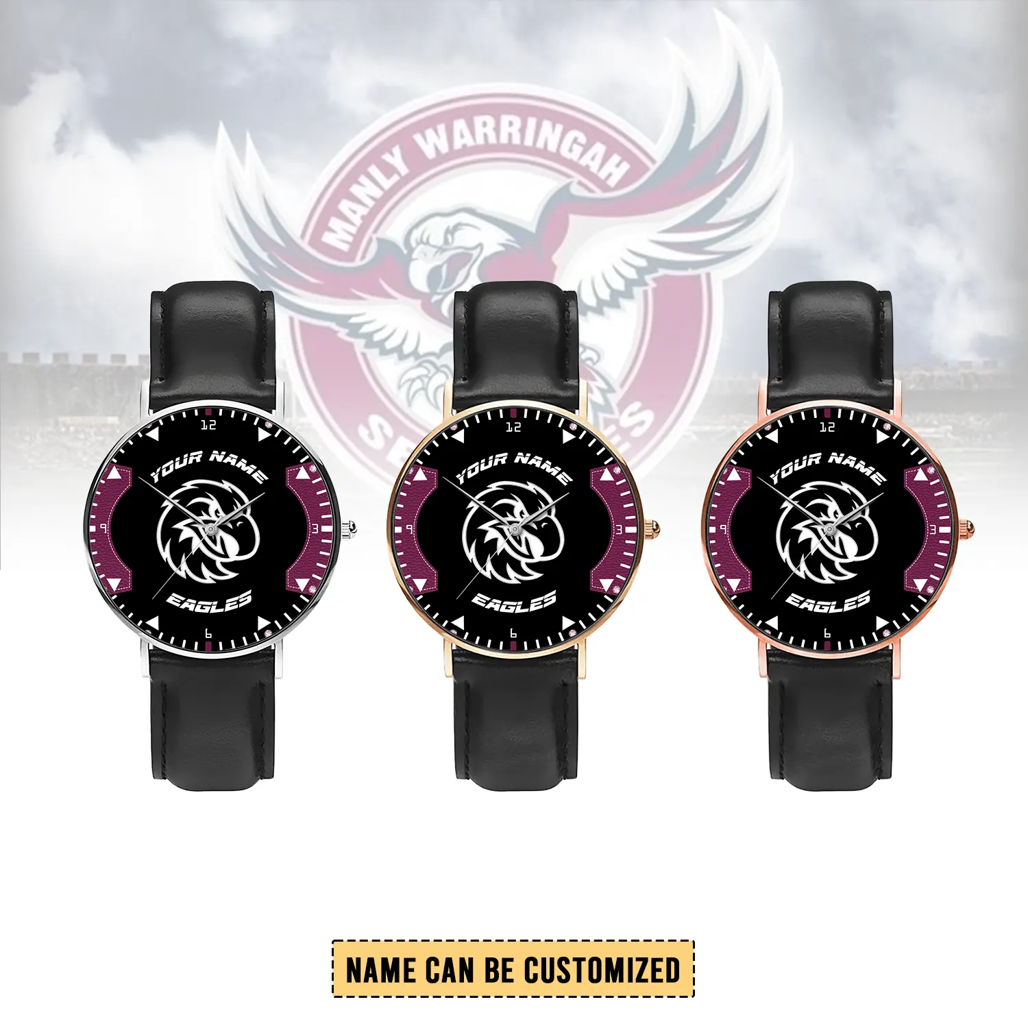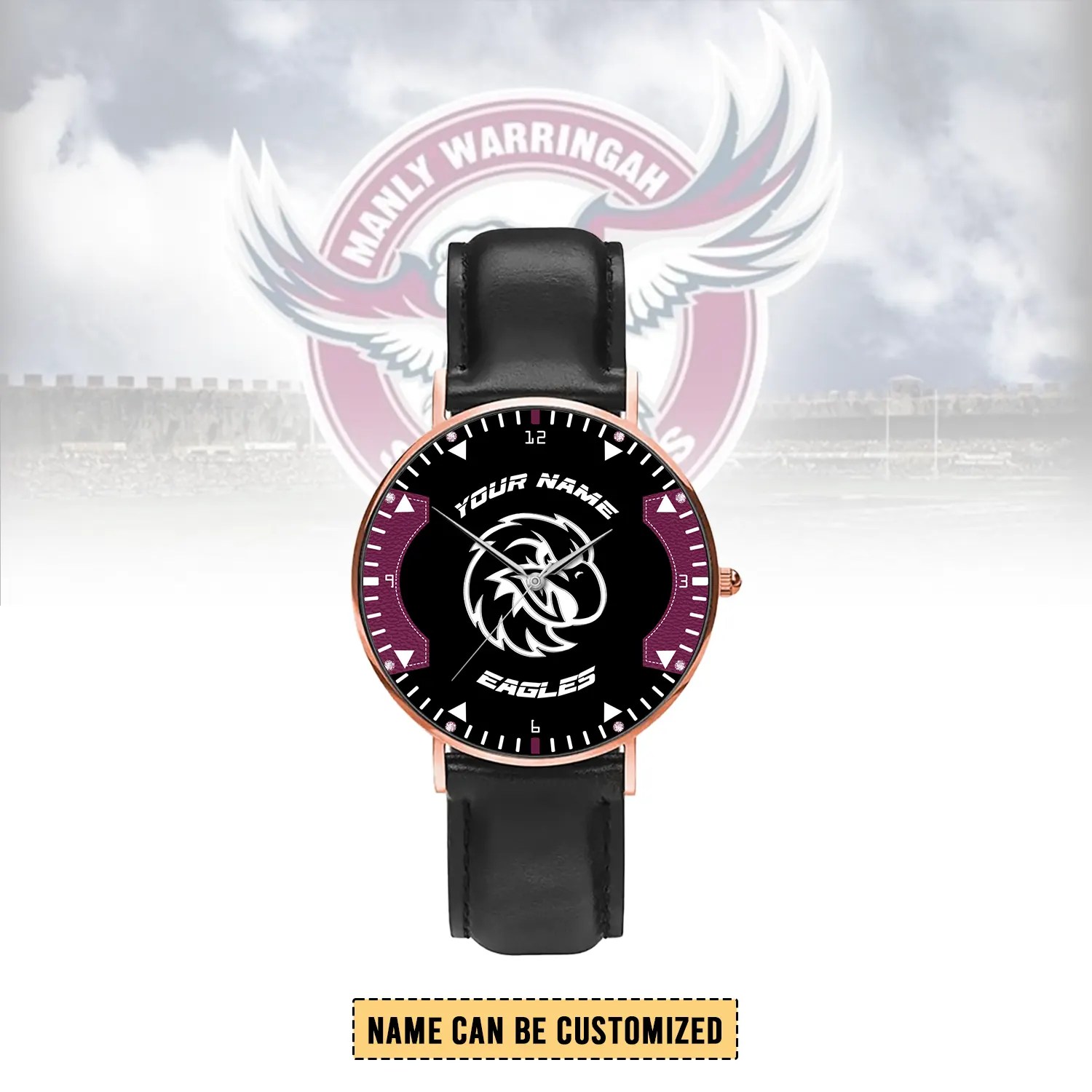 Auspiritmerch Manly Warringah Sea Eagles Personalized Stitched Leather Watch Gift For Fans
