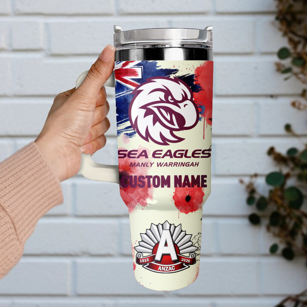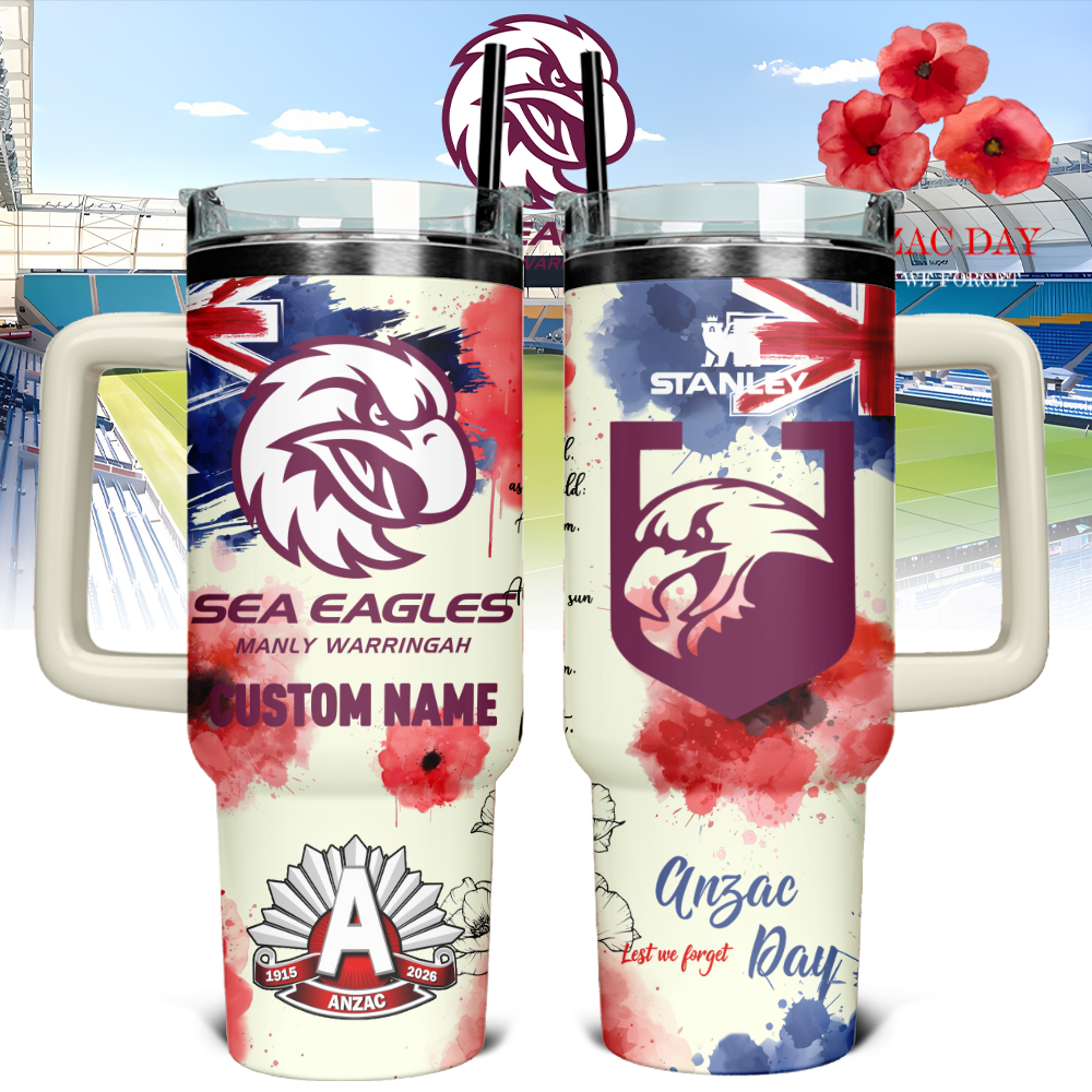 Auspiritmerch Manly Warringah Sea Eagles x Anzac Day Custom Stanley Quencher 40oz Stainless Steel Tumbler With Handle