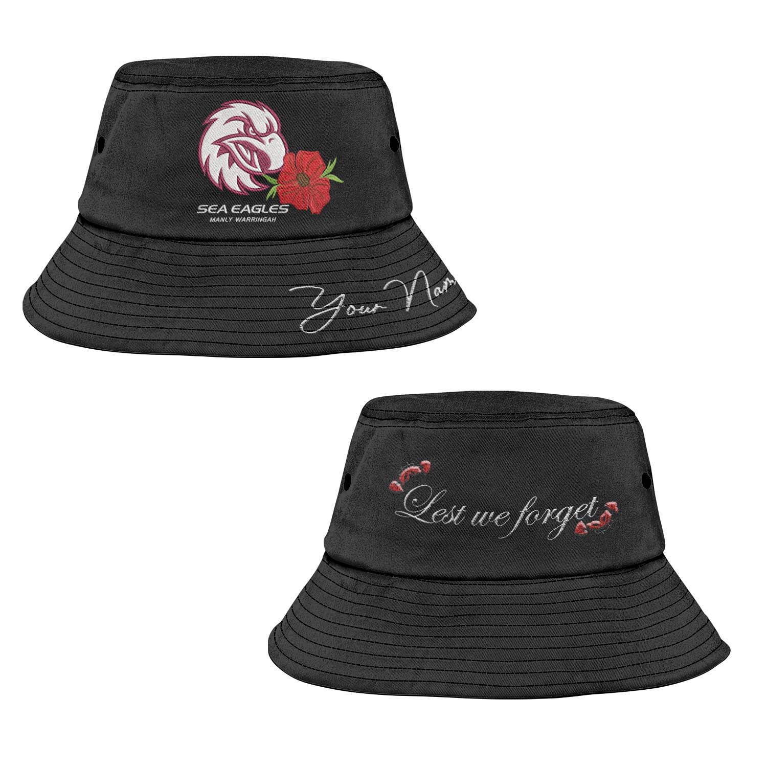 Auspiritmerch Manly Warringah Sea Eagles x Anzac Day Sports Personalized Embroidered Bucket Hat Gift For Fans