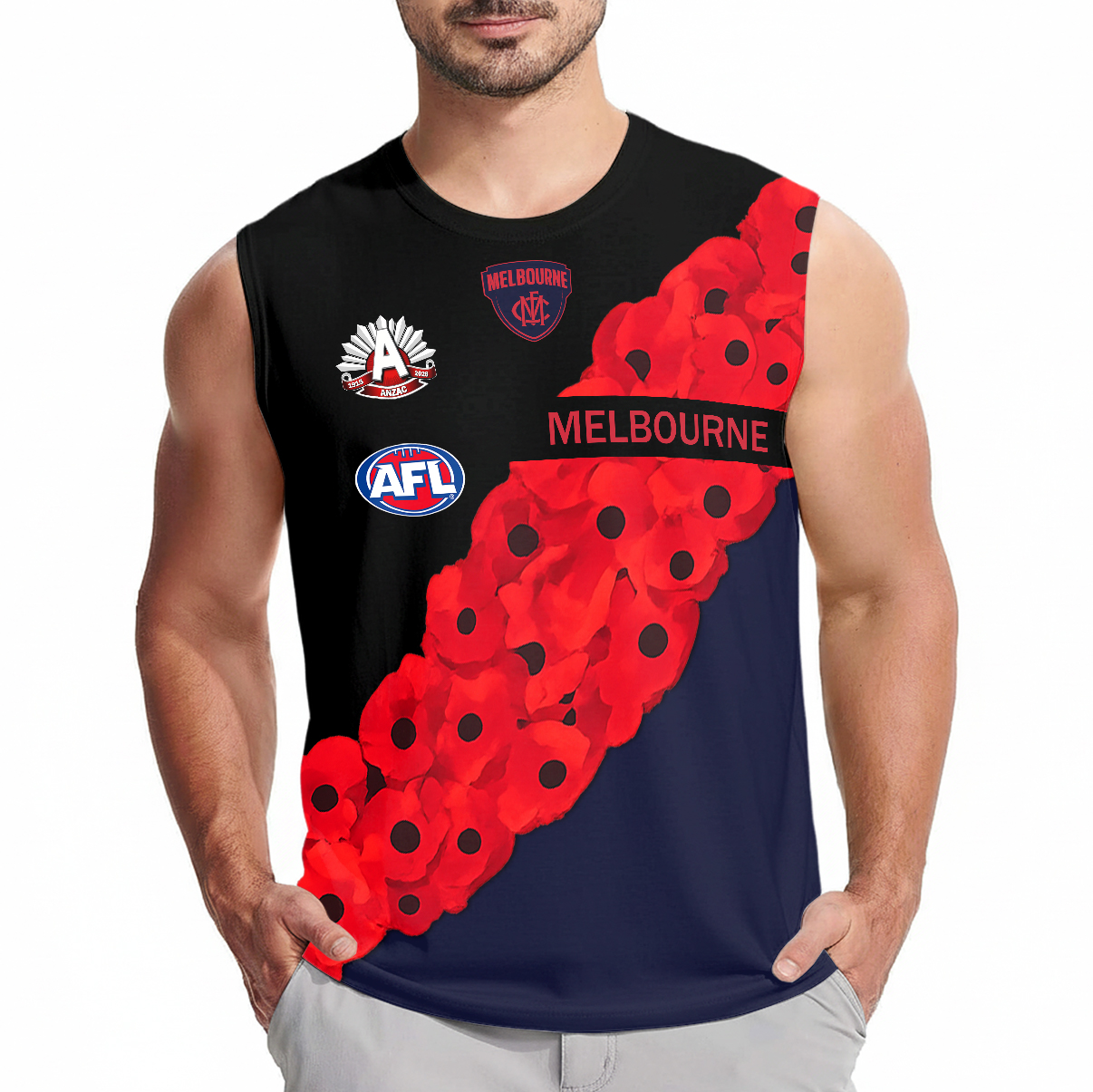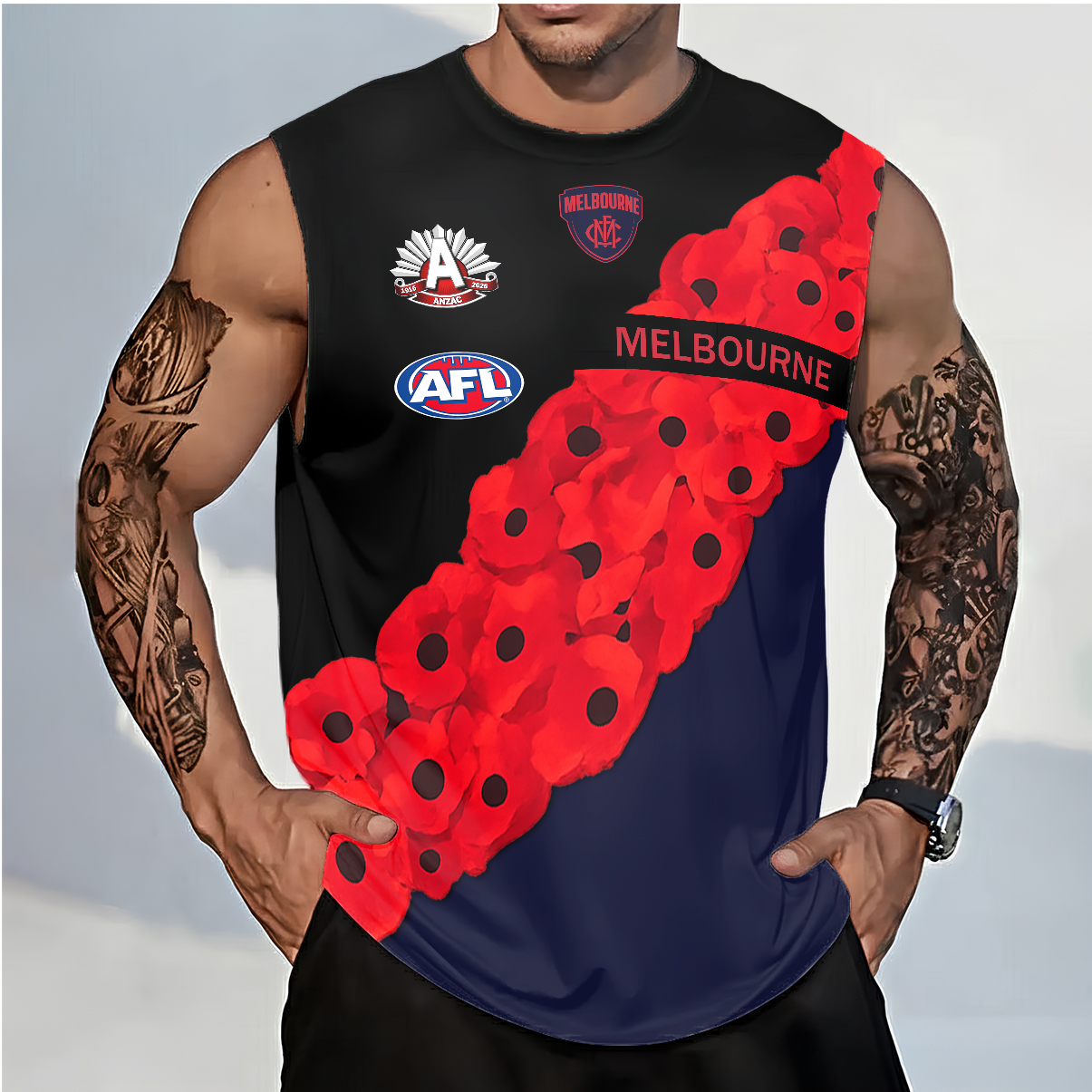 Auspiritmerch Melbourne Demons x Anzac Day Personalized Tank Top Gift For Fans $37.95