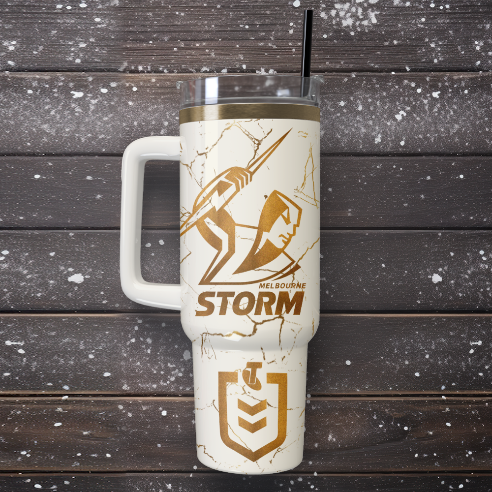 Auspiritmerch Melbourne Storm Custom Stanley Quencher 40oz Stainless Steel Tumbler With Handle $38.95