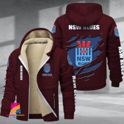 Auspiritmerch New South Wales Blues Personalized Hooded Fleece Thermal Cotton Jacket Gift For Fans $80.99