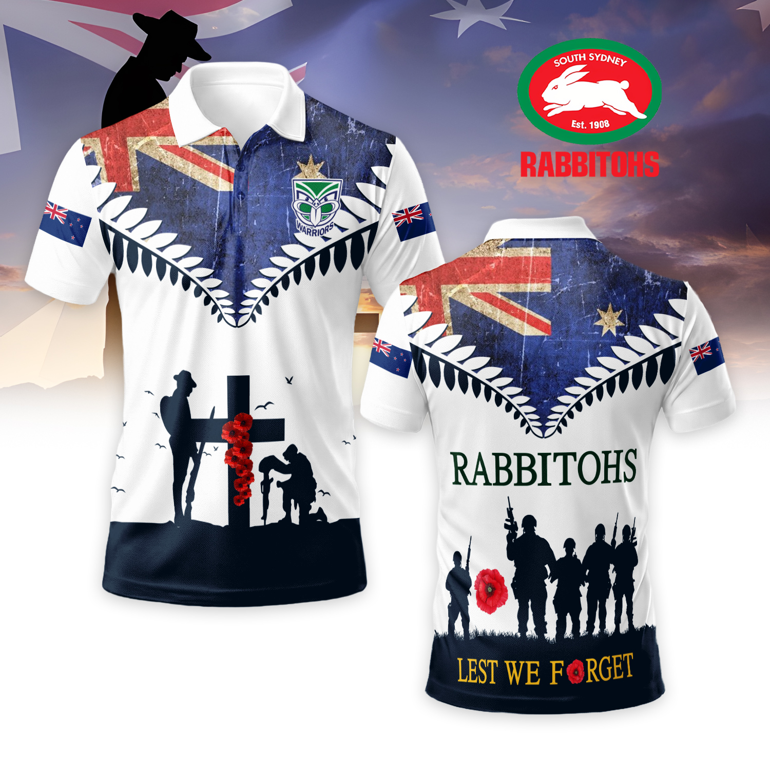 Auspiritmerch New Zealand Warriors x Anzac Day Personalized Polo Shirt Gift For Fans $39.00