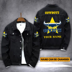 Auspiritmerch North Queensland Cowboys Personalized Denim Jacket Gift For Fans $62.99