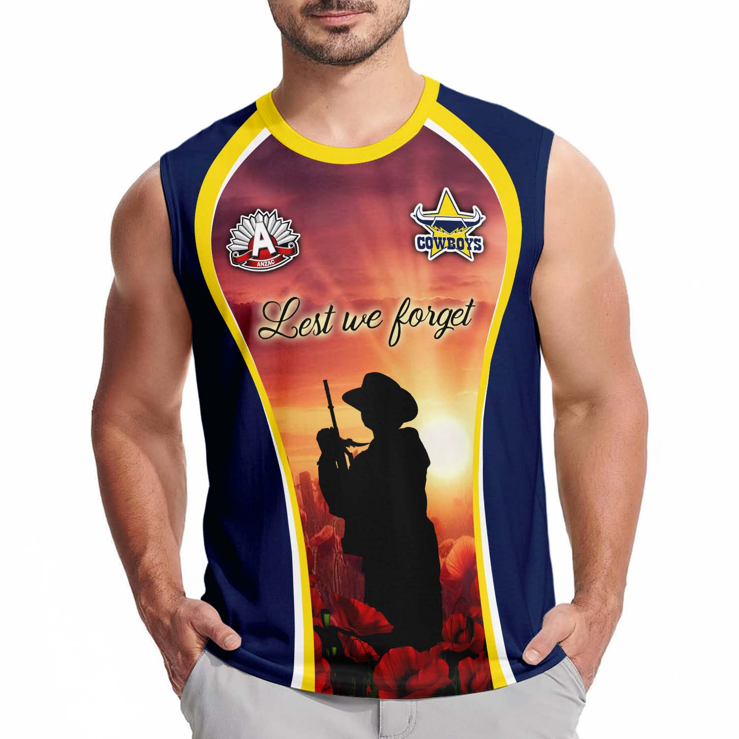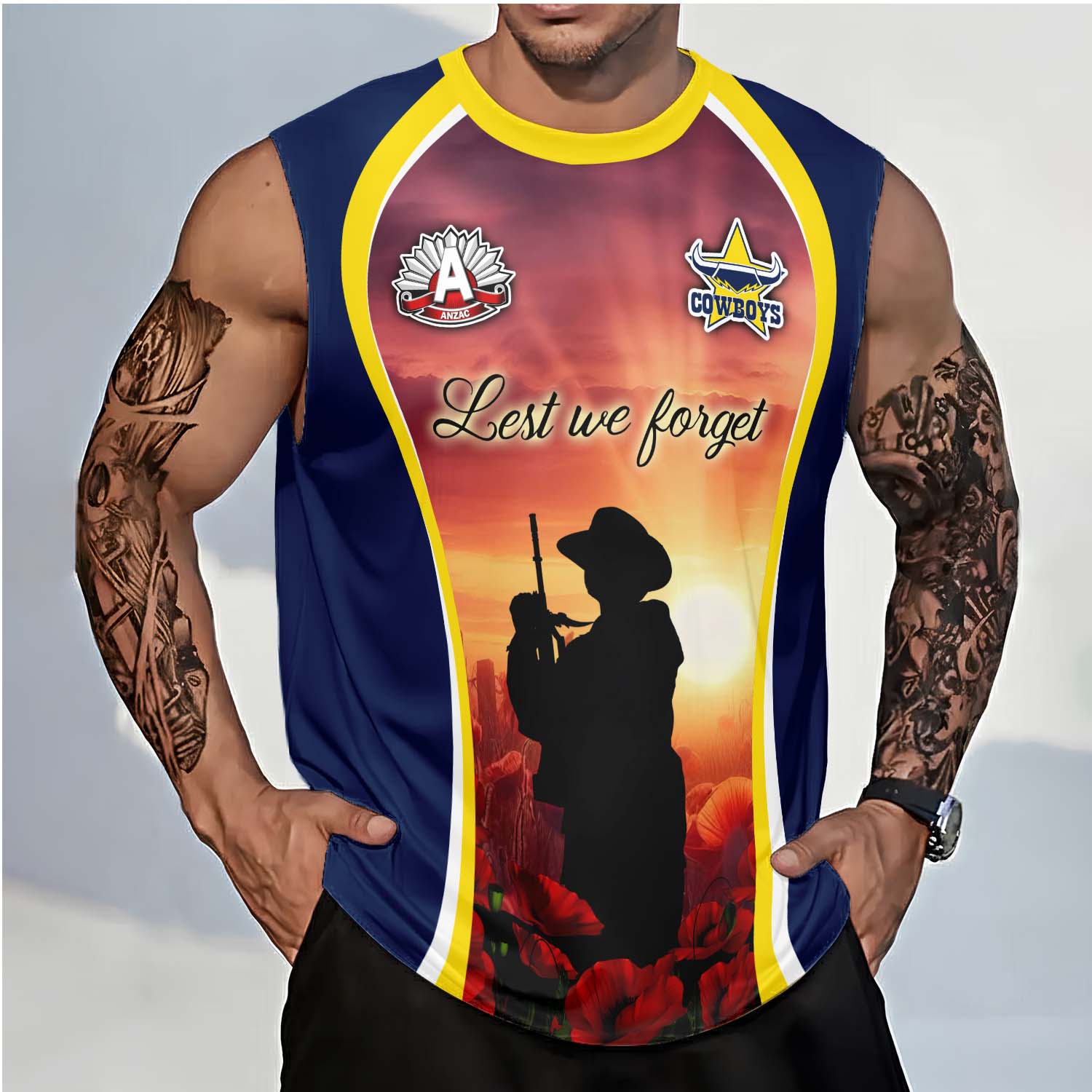 Auspiritmerch North Queensland Cowboys x Anzac Day Personalized Tank Top Gift For Fans