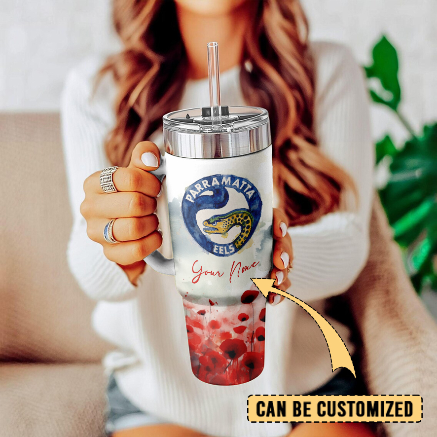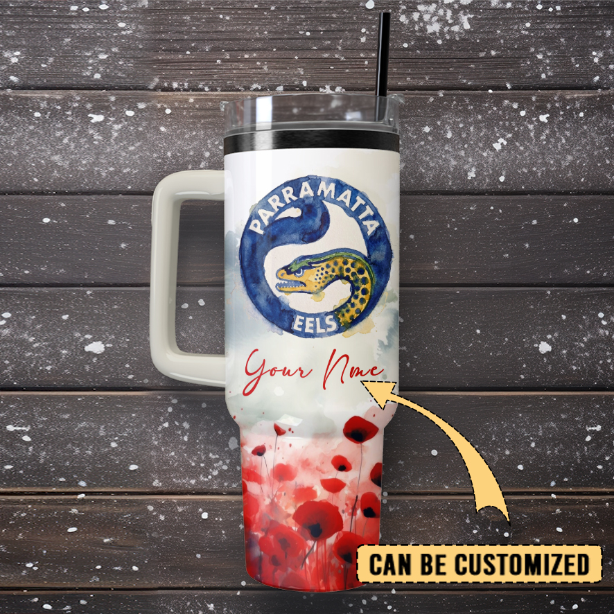Auspiritmerch Parramatta Eels x Anzac Day Custom Stanley Quencher 40oz Stainless Steel Tumbler With Handle