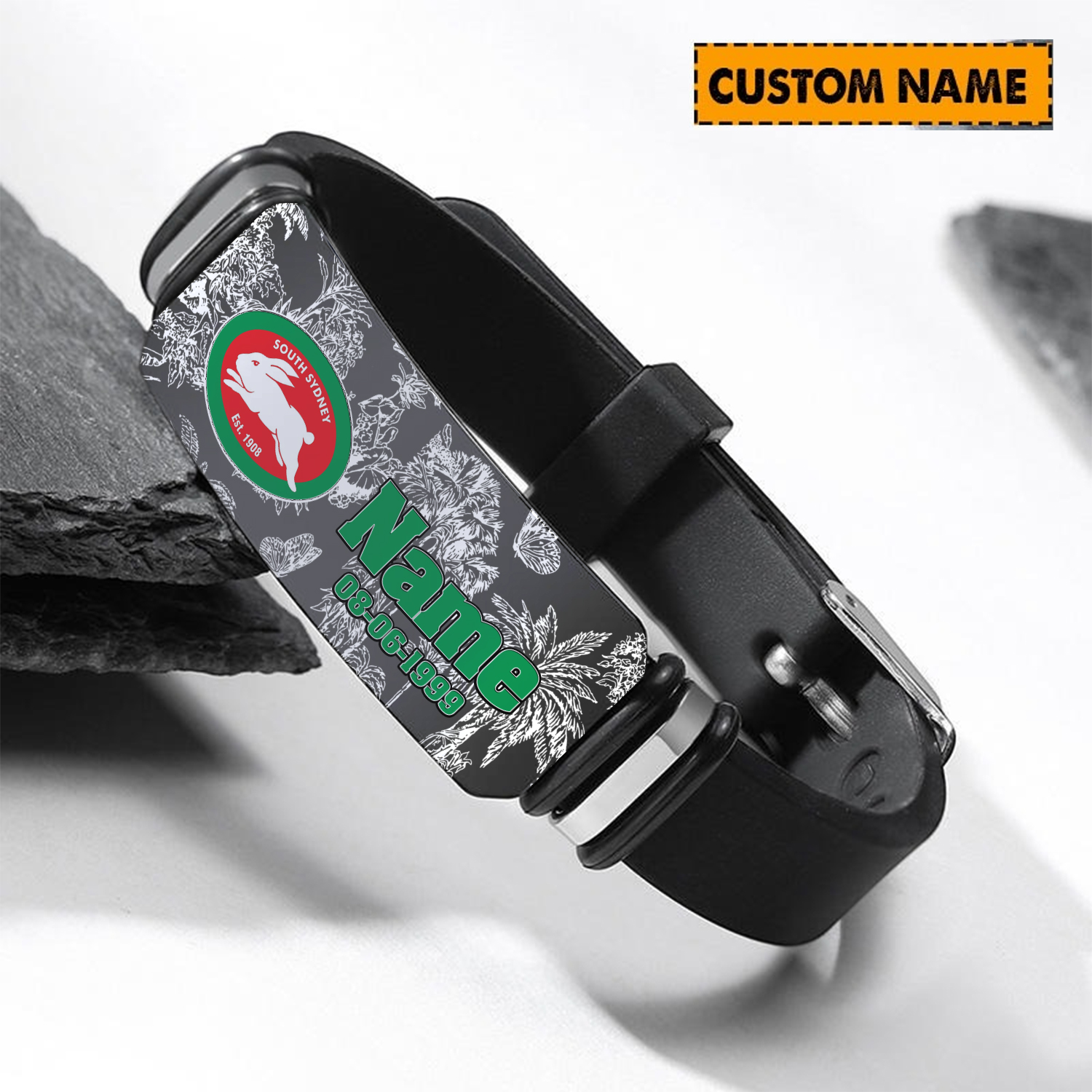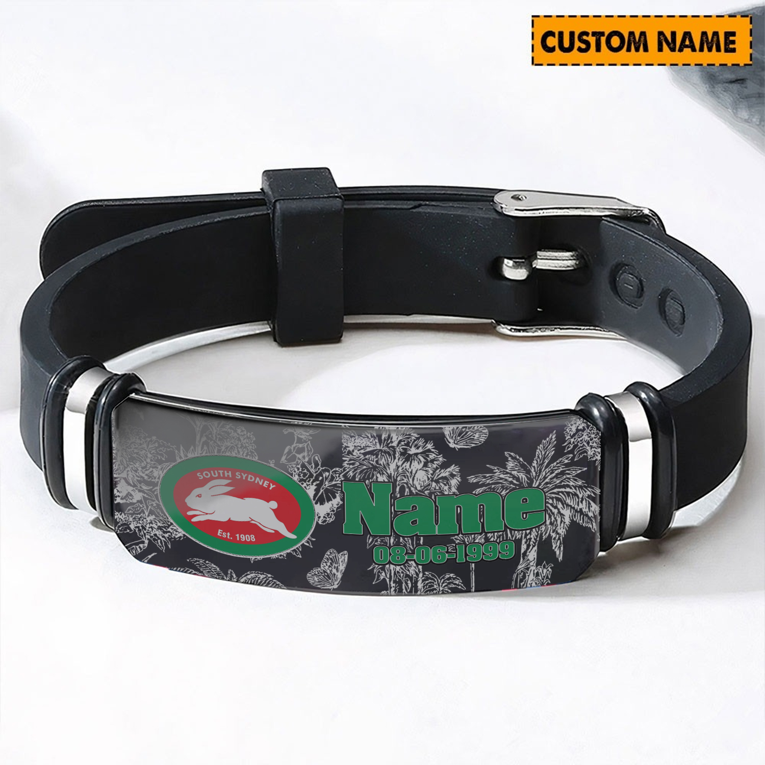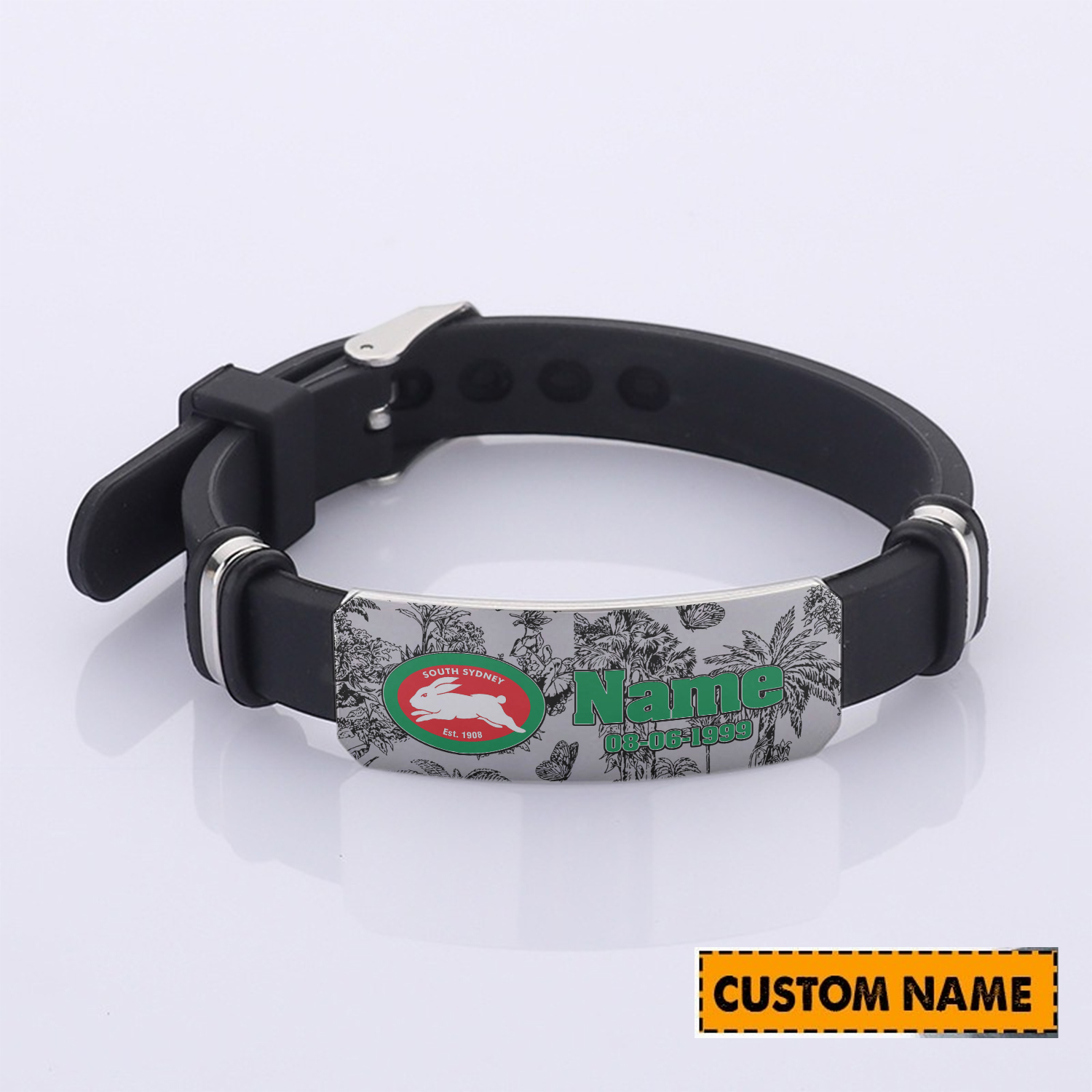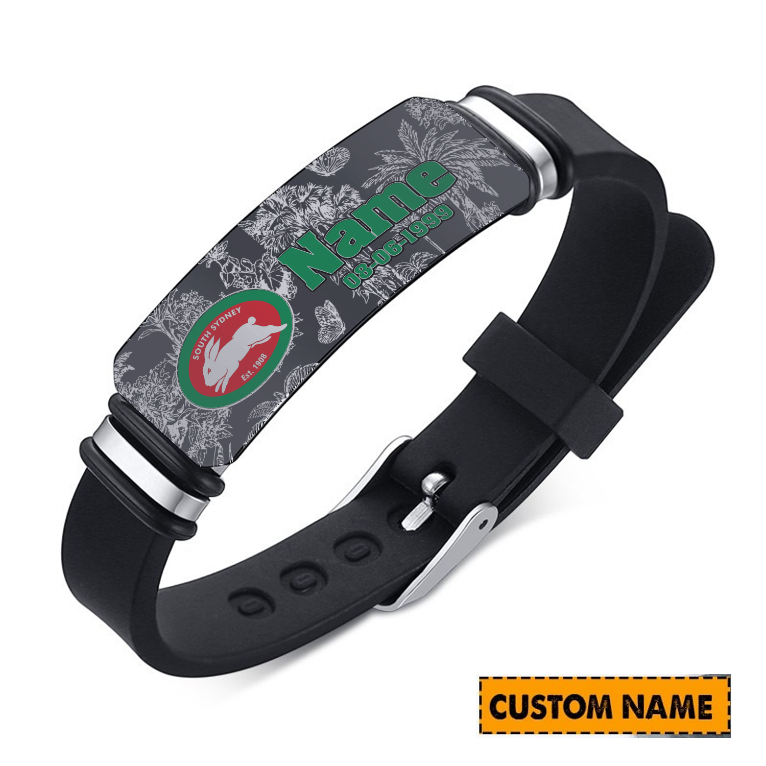 Auspiritmerch South Sydney Rabbitohs Personalized Steel Silicone Bracelet Gift For Fans