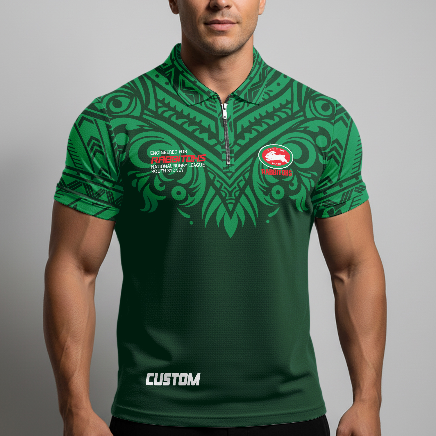 Auspiritmerch South Sydney Rabbitohs Personalized Zip Polo Shirt Gift For Fans