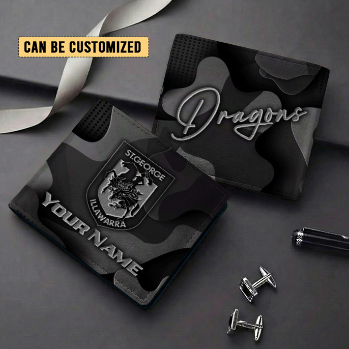 Auspiritmerch St. George Illawarra Dragons Personalized Leather Wallet Gift For Fans