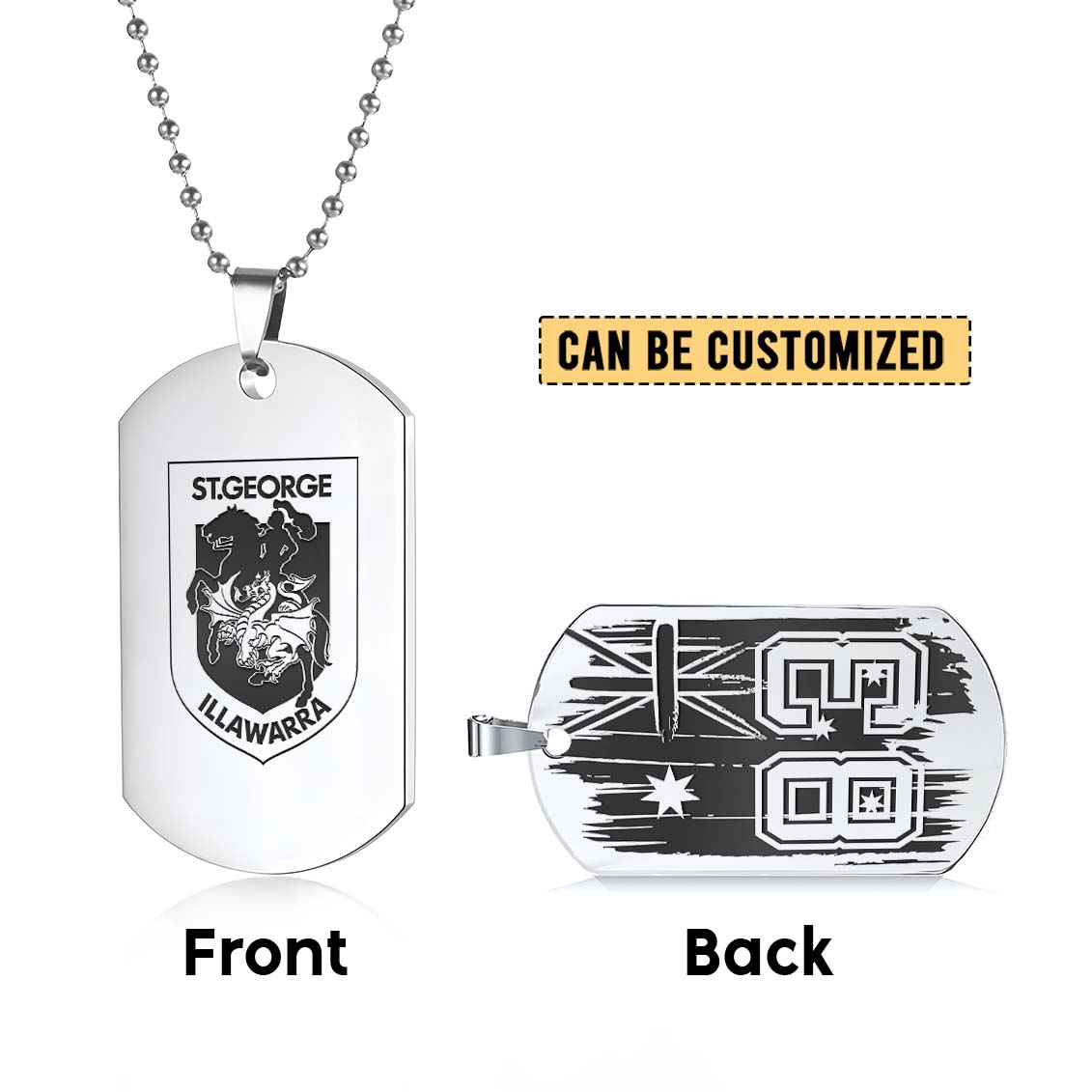 Auspiritmerch St. George Illawarra Dragons Personalized Necklace Dog Tag For Fans