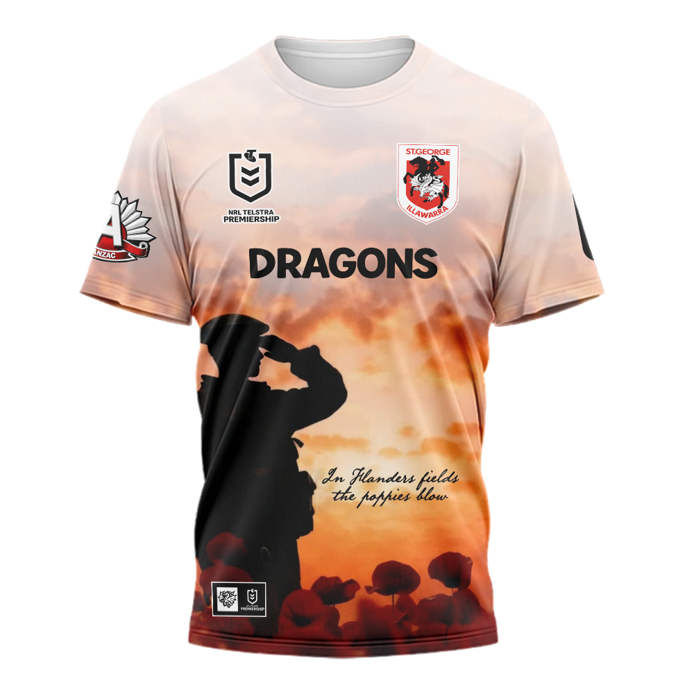 Auspiritmerch St. George Illawarra Dragons x Anzac Day Personalized T Shirt Gift For Fans