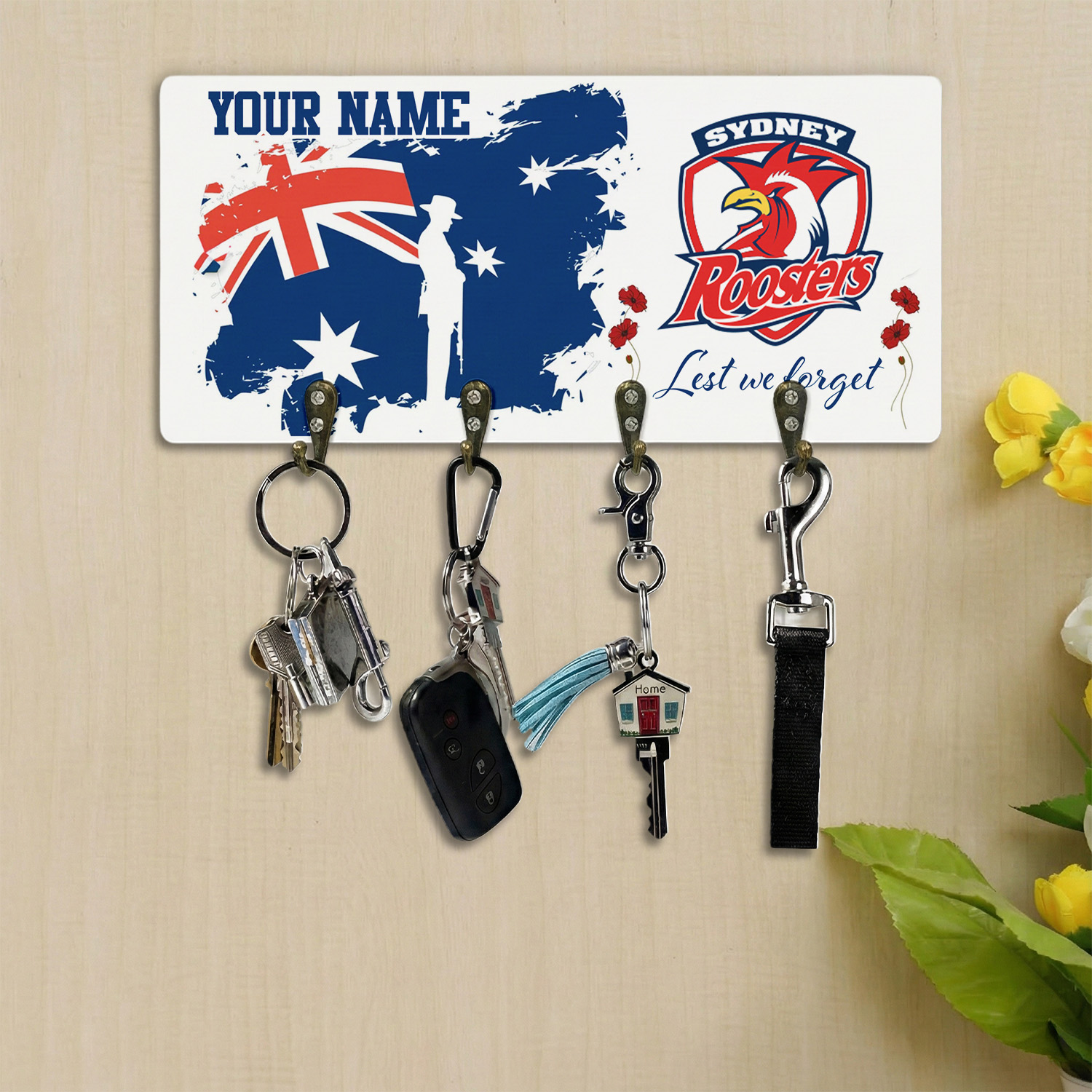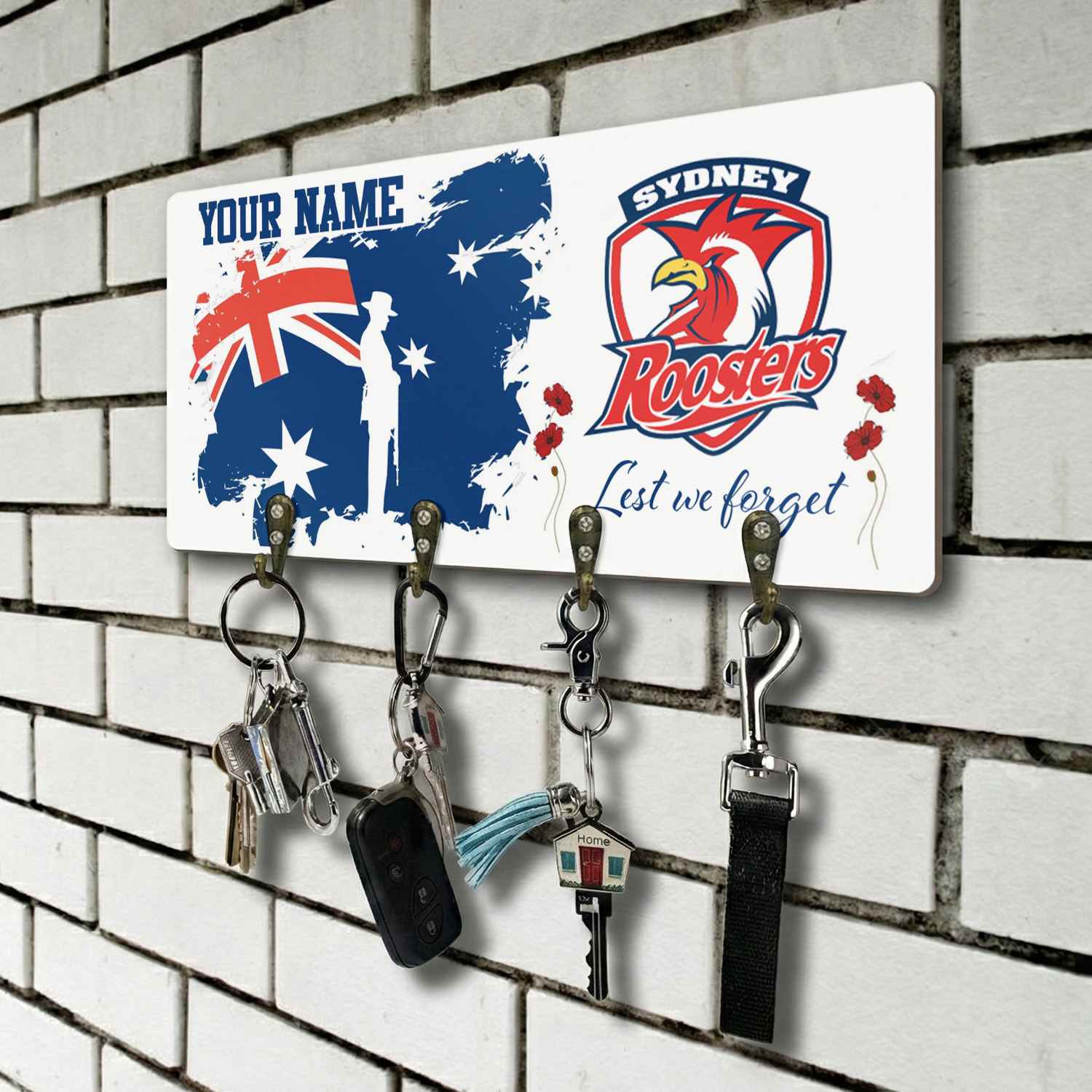 Auspiritmerch Sydney Roosters x Anzac Day Personalized Key Holder Gifts For Fans