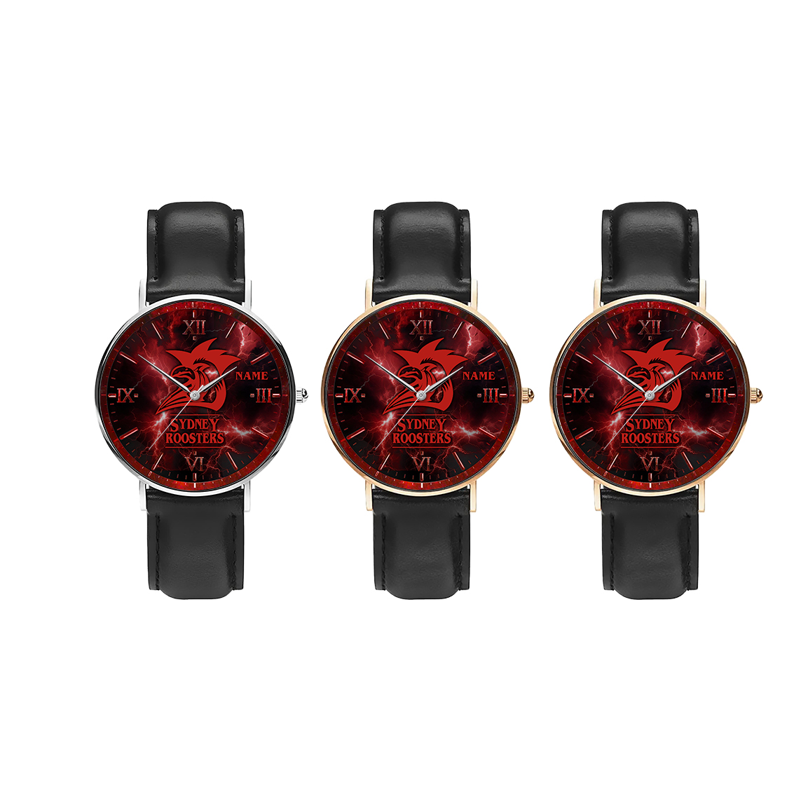 Auspiritmerch Sydney Roosters x Stranger Things Personalized Stitched Leather Watch Gift For Fans