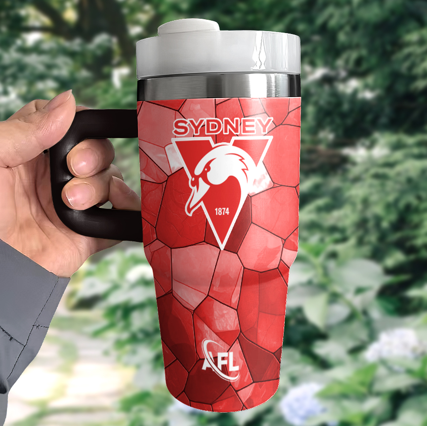 Auspiritmerch Sydney Swans Custom Stanley Quencher 14oz Stainless Steel Tumbler With Handle