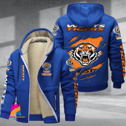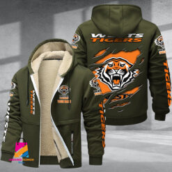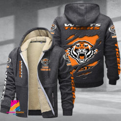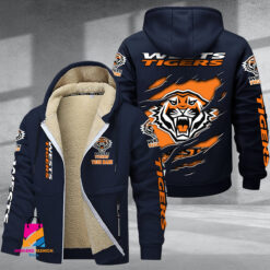 Auspiritmerch Wests Tigers Personalized Hooded Fleece Thermal Cotton Jacket Gift For Fans $80.99